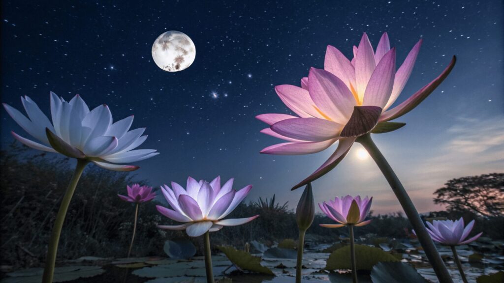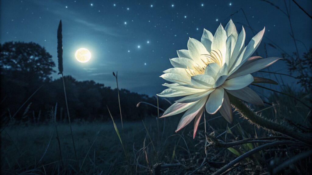 It is a rare night-blooming flower known for its striking beauty and mysterious charm. It blooms only at night and fades by morning.